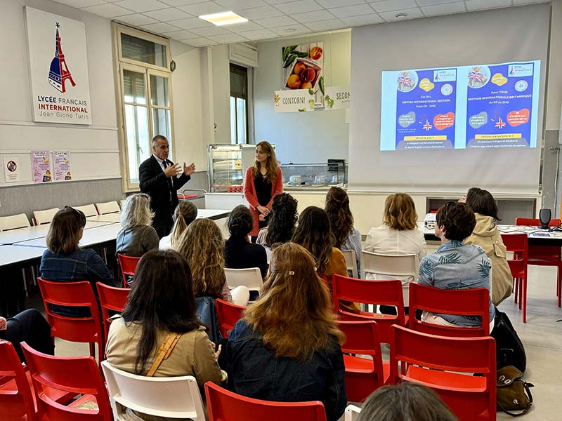 Sabato e domenica chiuso. Le lezioni iniziano i primi di settembre e si concludono a fine giugno con le vacanze estive (luglio e agosto). L’anno scolastico si suddivide in periodi di sette settimane di lezione alternate a due settimane di vacanza.Strutture:Un Istituto a misura di bambino. Quasi 600 alunni suddivisi in una trentina di classi in un ambiente verde e protetto. Il liceo dispone di campi sportivi (basket, calcio e pallamano) e spazi ricreativi di qualità. Prati e giardini didattici consentono l’organizzazione di attività dedicate all’ambiente. Gli alunni hanno accesso ai centri di documentazione per le elementari (BCD) e per la scuola secondaria (CDI) autonomamente o in classe. Integrati a tutti i corsi, gli strumenti digitali (computer, tablet…) sono a disposizione di tutte le classi. Le LIM (lavagne interattive multimediali) introducono in maniera graduale i più piccoli alle nuove tecnologie.Attività e laboratori:Esami e certificazioni (Terza Media, diploma del Brevet, Baccalauréat, Maturità, Certificazioni in tutte le lingue, Brevet d’initiation aéronautique). Più di 20 attività extrascolastiche incentrate su arte, lingue straniere e attività sportiva. Gite alla giornata e viaggi scolastici.Servizi e iniziative:Servizio mensa con preparazione dei pasti sul posto ogni giorno con prodotti locali, di qualità e di stagione. Servizio di doposcuola aperto tutti i giorni fino alle 18. Servizio bus a richiesta con azienda collaboratrice.inoltre:Per vedere il video di presentazione clicca QUI.